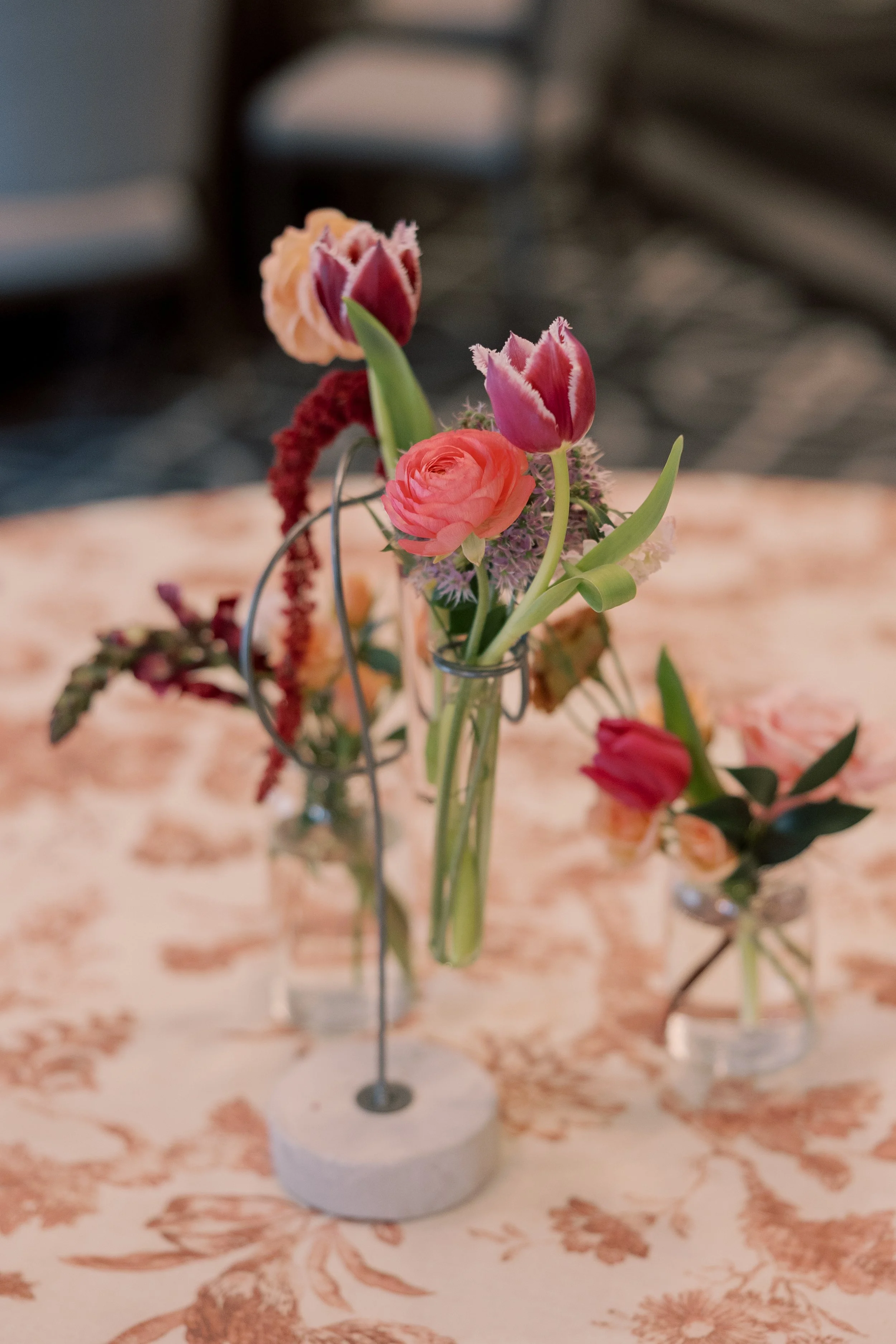 This is for bouquets, boutonnieres, flower girl flowers, wrist corsages and other wearable flowers for you, your wedding party and your family. These can all vary on size and flower choice, but the standard range for these arrangements is between $1,500-$3,000+. The bridal bouquet or the boutonnieres set the tone for the rest of your wedding florals and the place to add anything that is personal to you! I had a bride who paid tribute to her father who had just passed a few months earlier by adding tiny disco balls into her bouquet. It was so special to her to add in this touch of personality into her day.